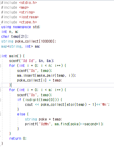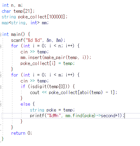 문제를 풀 때에 map 을 이용하는 것 까지는 맞았지만 map<int,string> 으로 했던 잘못이 있었다.
